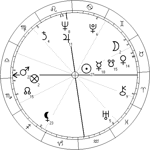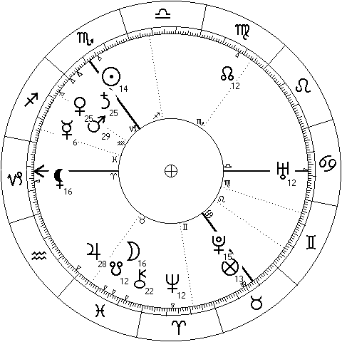 Paul Dirac was an English mathematical and theoretical physicist. In his horoscope we can notice Uranus, Neptune and Pluto in angular houses. The strong influence of these three planets signifies visionary thinking and scientific career. Mr Dirac is considered as one of the founders of quantum mechanics.